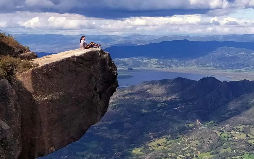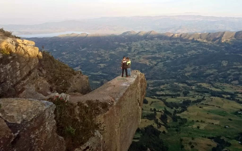 El momento más emocionante del tour llega en el mirador Piedra Colgada, un farallón natural a más de 150 metros de altura desde donde se aprecia el imponente valle de Ubaté. Con todas las medidas de seguridad, arneses y equipos especializados, podrás acercarte al borde del acantilado y capturar una fotografía que quedará para siempre en tu memoria. Un lugar perfecto para los que buscan escapadas cerca a Bogotá que combinen naturaleza, vértigo y libertad.